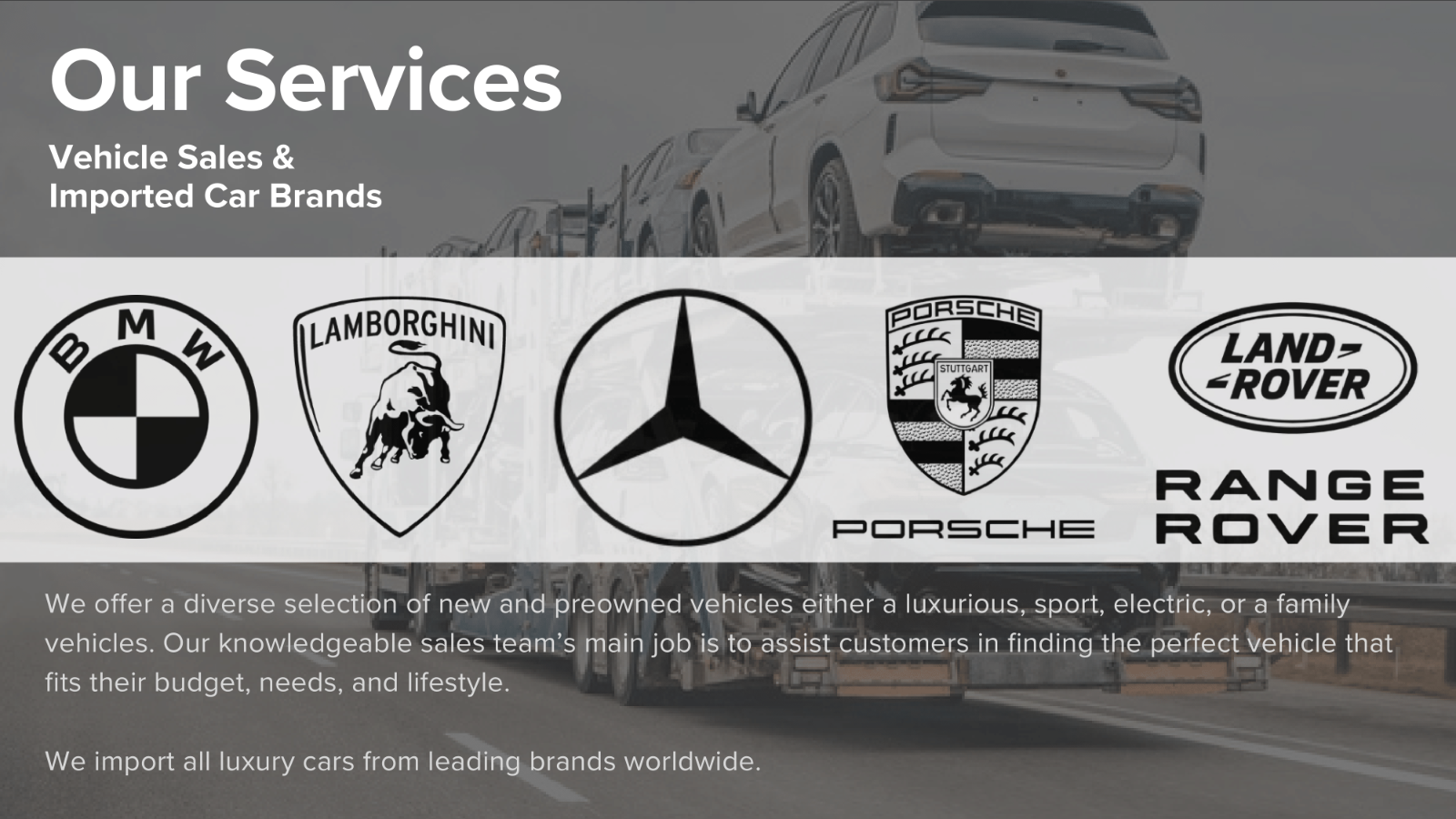 Our Mission is to provide our valued customers with a rewarding automotive experience by, offering a diverse and authorized vehicle selection, delivering exceptional customer service, ensuring quality and reliability, and fostering long-term customer satisfaction.